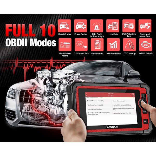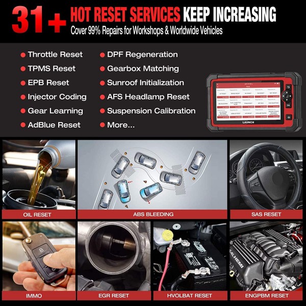 LAUNCH CRP919E podpira 31+ vrst funkcij vzdrževanja: